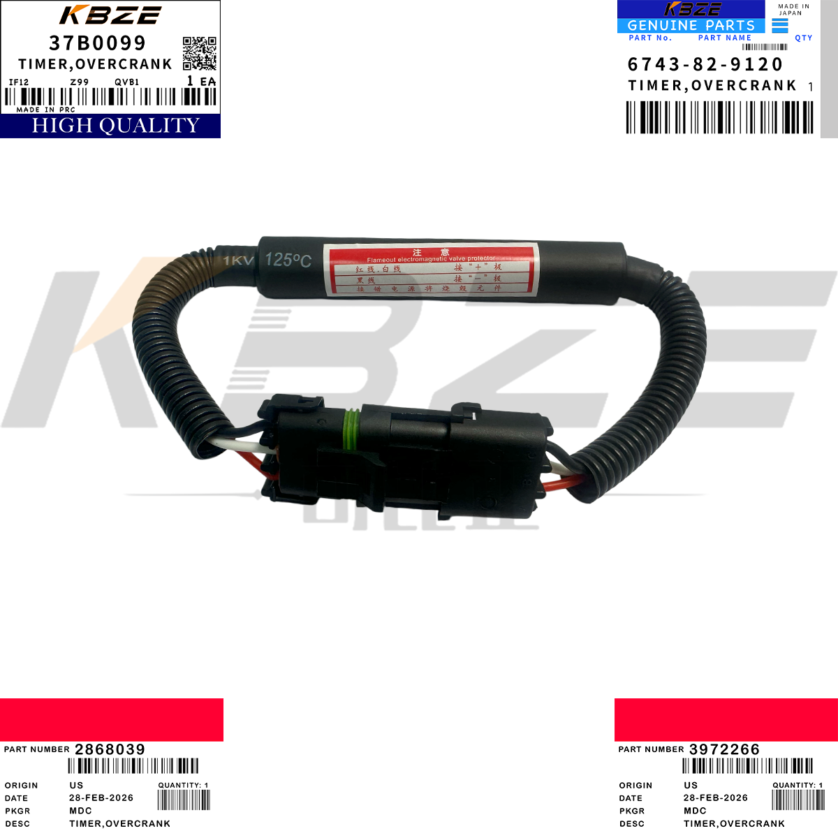 KBZE 6743-82-9120 2868039 FLAMEOUT SOLENOID TIME OVERCRANK 3972266 37B0099 FOR SY215 XE215 LG922E JS215 6BT ENGINE